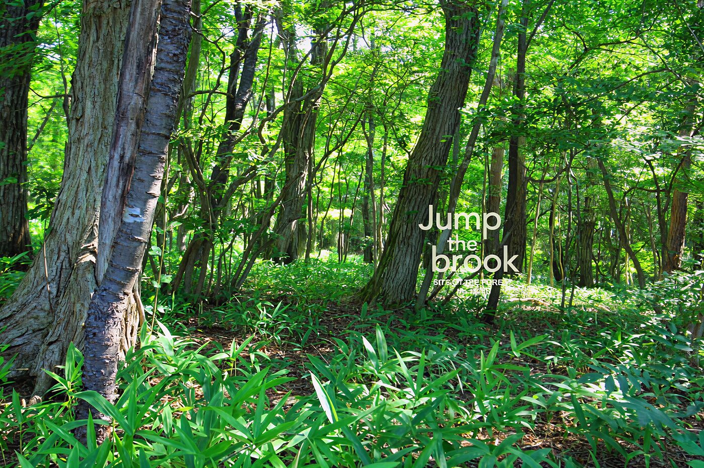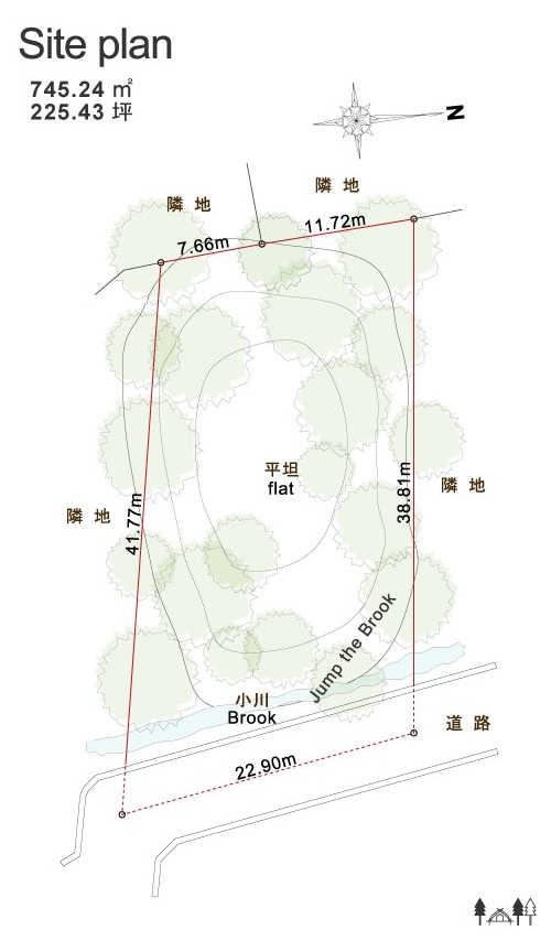 通りと敷地の間には時々あらわれる小川があって、ひょいと飛び越えて渡るのがなんだか楽しい。うっすらと馬の背形状になった敷地は浮島的な雰囲気。