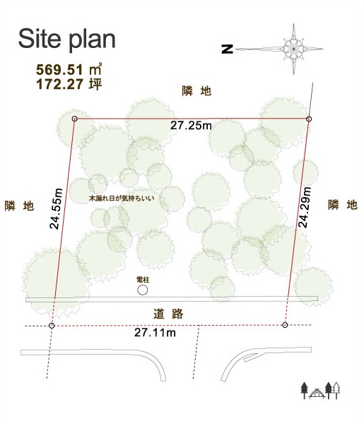 日向が転々と広がるこの土地は、ほっこりとした優しい雰囲気。手作りの鳥小屋を設置してみたり、お庭を作ってみたり、小さめの平屋を建てればゆったりとした時間の流れを感じられそう。